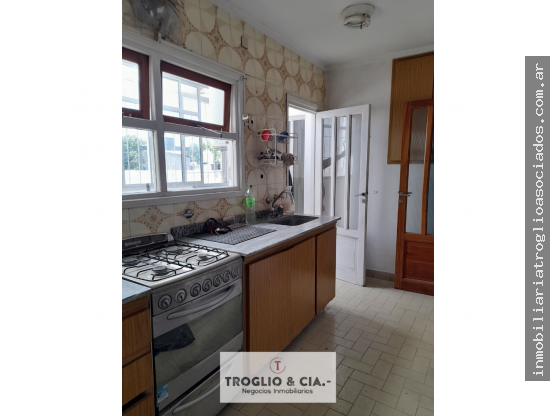 La casa principal cuenta con cuatro ambientes; en planta baja con dos locales de aproximadamente 18m2 y con un baño cada uno; en planta alta se encuentra el living y un dormitorio con placard y balcón corrido a la calle; 2do Y 3er dormitorio con placard; la cocina se encuentra separada con acceso a un patio chico cubierto con pileta de lavadero y parrilla, este mismo dispone de salida a una amplia terraza. Baño completo con bañera.