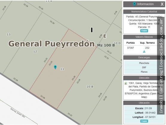 Medidas terreno:  Frente de 10.39 mts. y sus laterales de 24.25 mts.